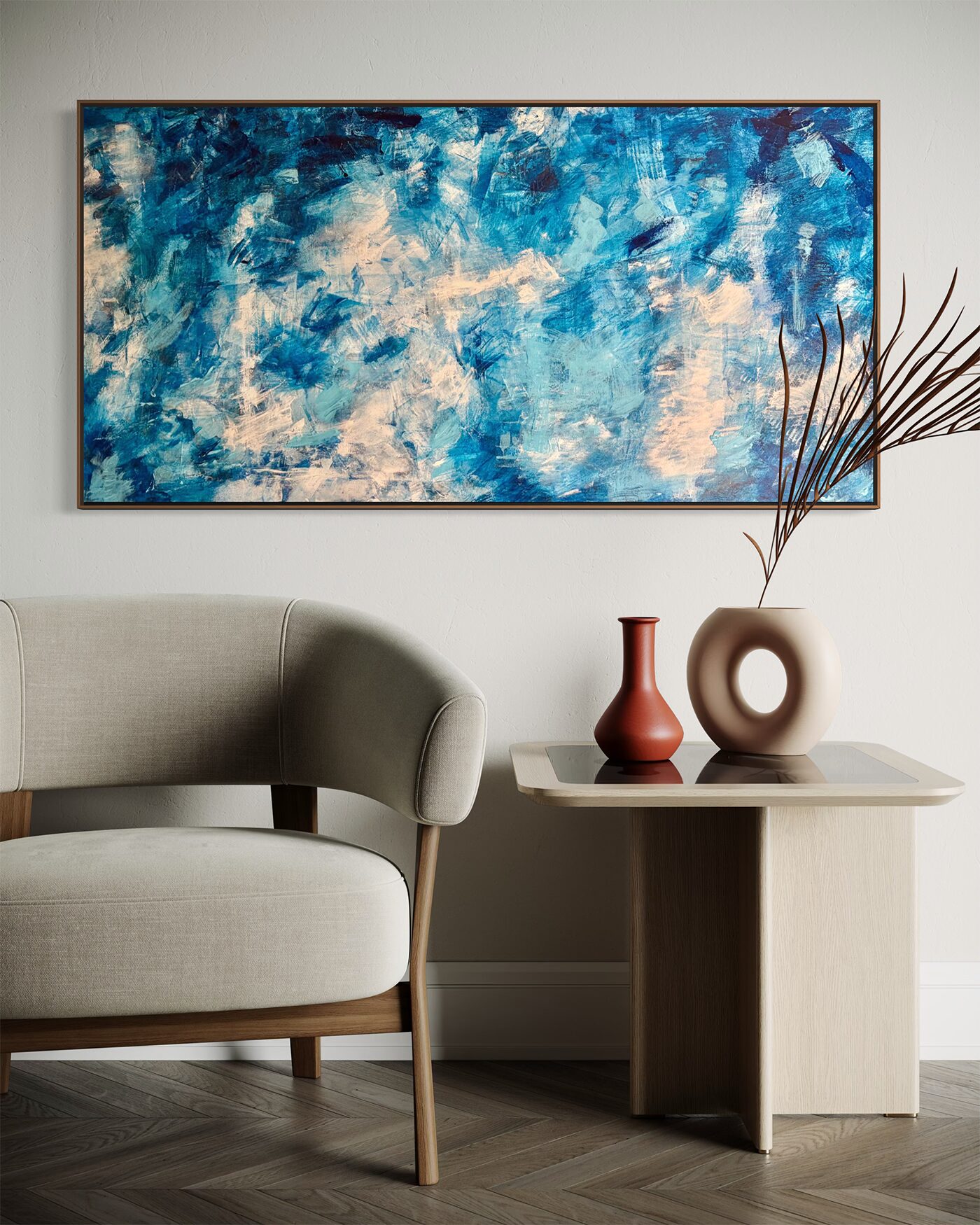Keywords: Abstract painting, blue abstract, contemporary abstract, coastal influence, atmospheric art, modern wall art, textured acrylic, layered abstraction, calming artwork