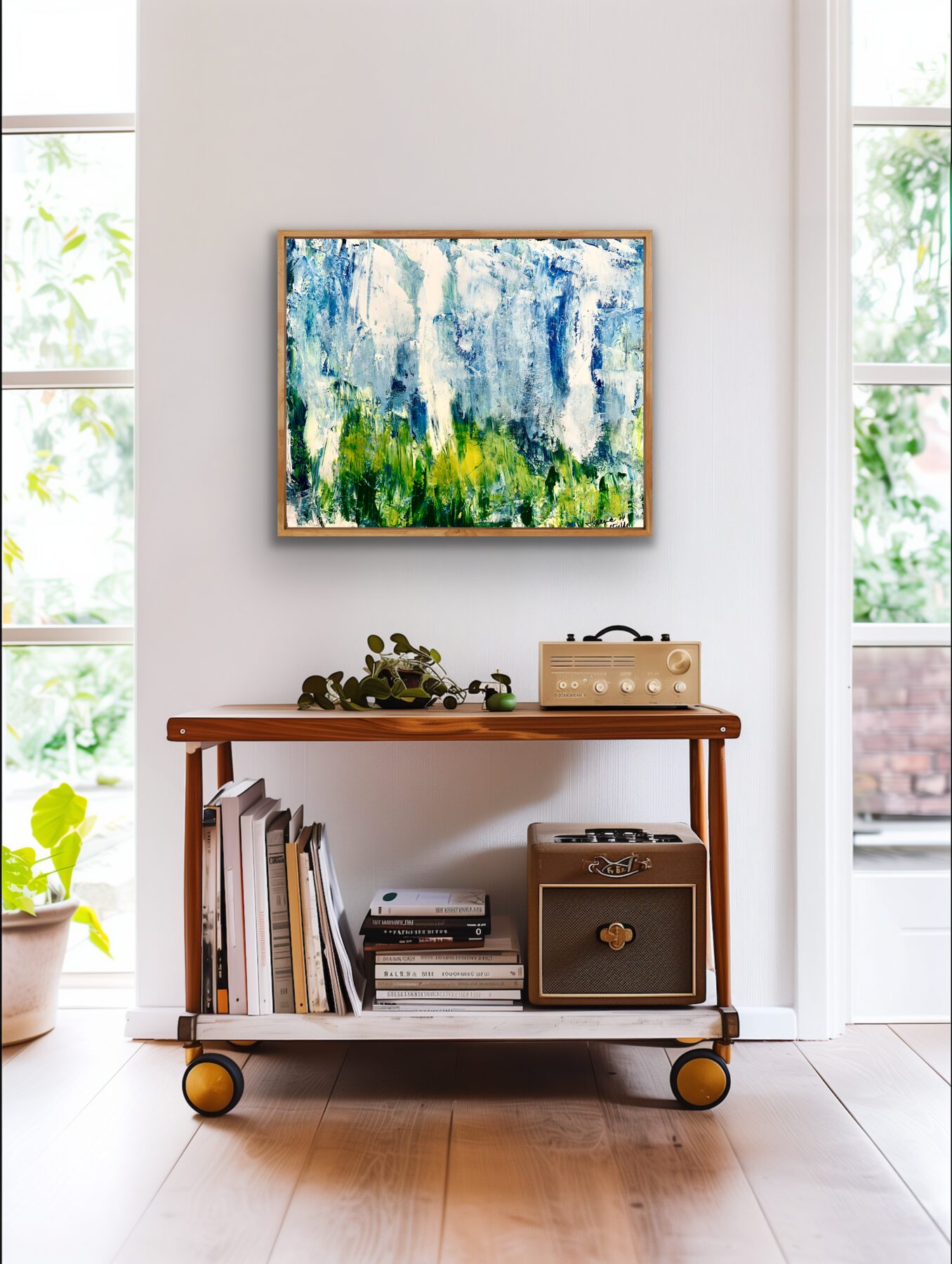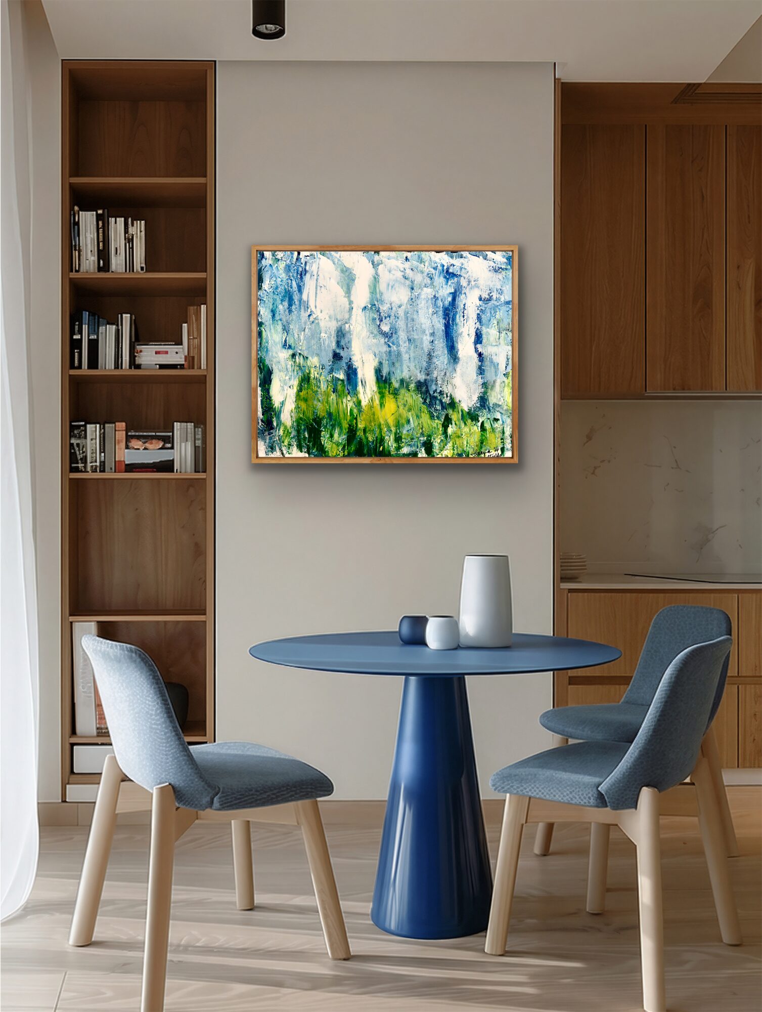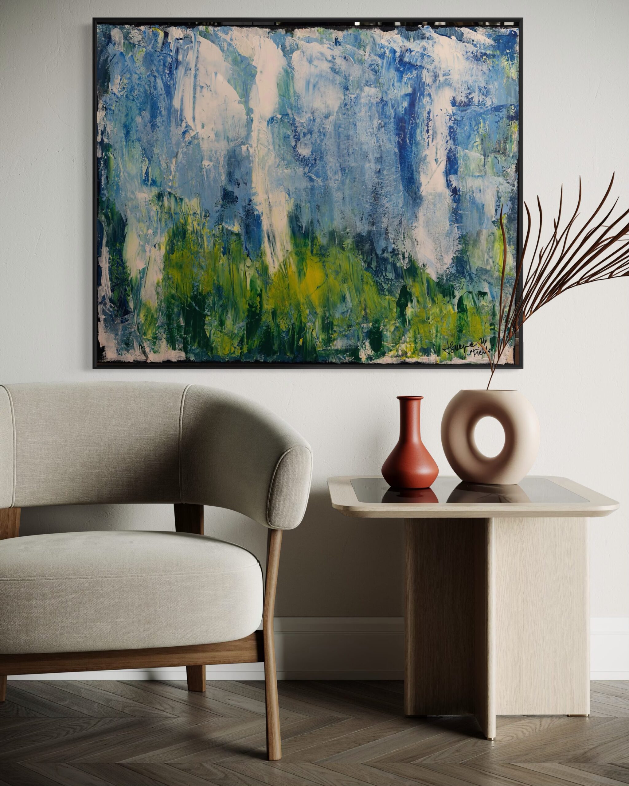 Keywords: abstract landscape painting, blue and green abstract art, contemporary abstract painting, nature inspired, abstract art, textured abstract painting, modern landscape abstraction, expressive abstract painting, organic abstract artwork